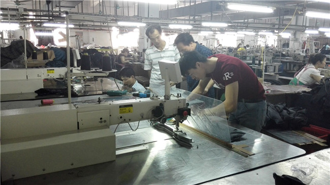2016新一季的英国品牌jack wills的棉衣生产爱彩网81881 计划已经开始了,为了更标准的车缝工艺,睿牛制衣厂的技术人员针对款式的走线要求在认真仔细地研究讨论新车缝工艺的测试和调整。