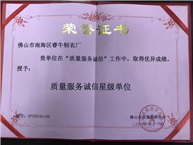 羽绒服厂家爱彩网81881:“质量服务诚信星级单位”实至名归!祝贺爱彩网81881荣获“质量服务诚信星级单位”。