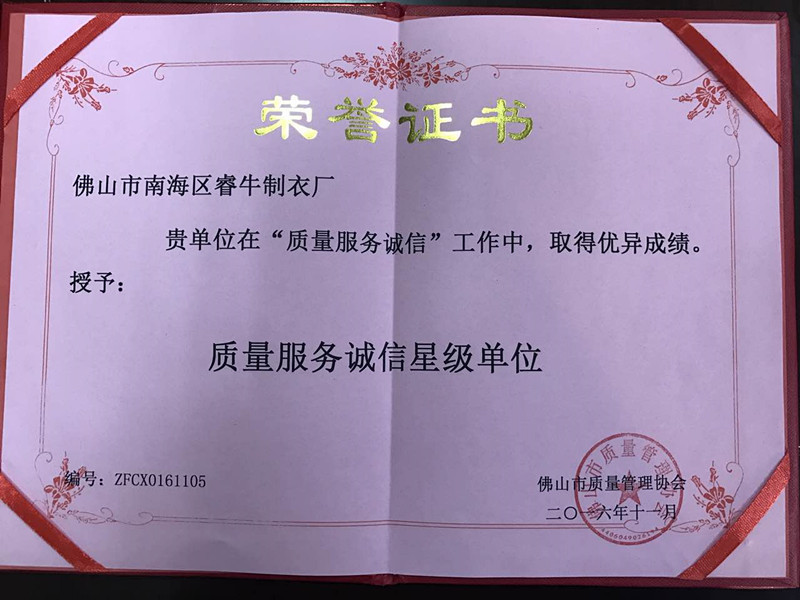 “质量服务诚信星级单位”不光是指质量还指服务与诚信,只有质量服务诚信三者兼顾才能有此荣誉。功夫不负有心人,爱彩网81881在政府的领导下荣获了这一证书。